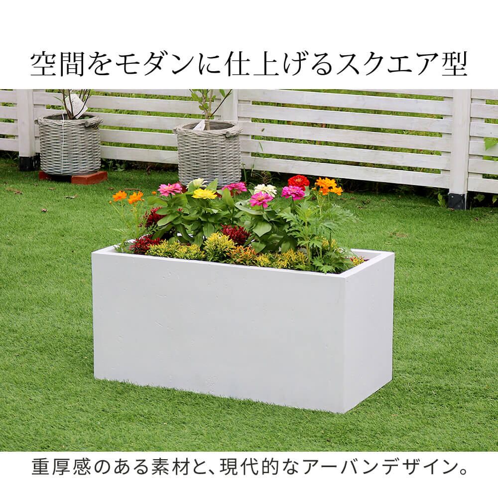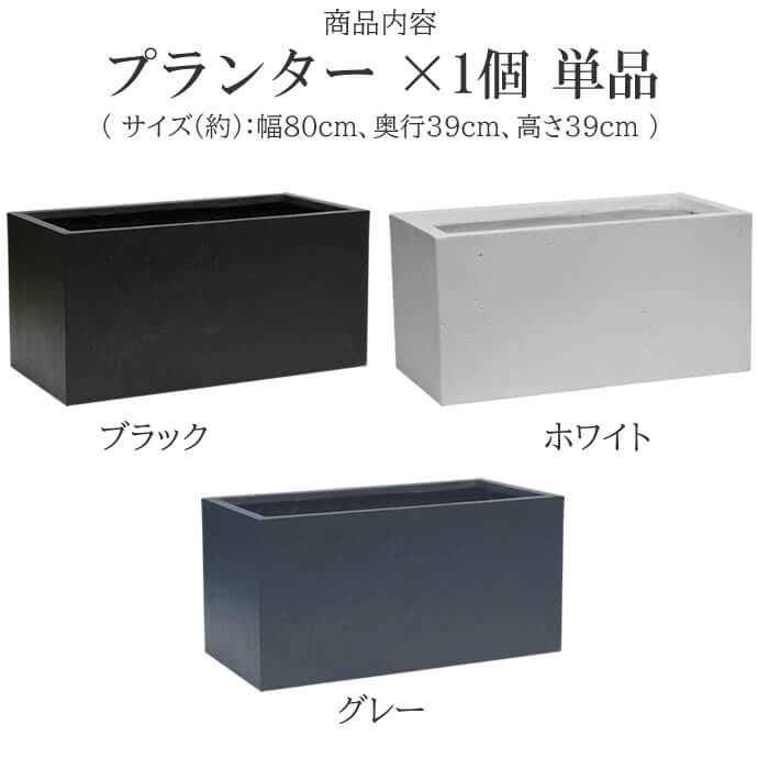 長方形プランター 80cm幅 ブラック ホワイト グレー 黒 白 灰色 植木鉢 鉢植え ガーデンプランター 幅80cm 奥行39cm 高さ39cm おすすめ おしゃれ 北欧 モダン スタイリッシュ コンクリート風 石調 長方形 プランター ベランダ バルコニー 玄関 庭 ガーデニング 水抜き穴付き