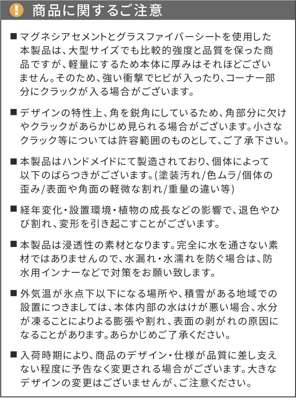 コンクリートや石調の色、風合いにこだわったマグネシアセメント製の幅80cm、奥行39cmの長方形プランターです。