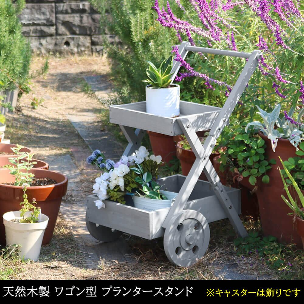 プランタースタンド ワゴン型プランタースタンド プランター台 プランターラック 園芸 庭園 玄関 花壇 ベランダ バルコニー 家庭菜園 観葉植物 ライトブラウン グレー 天然木使用 木製プランターラック 木製プランター台 多肉植物 野菜 果物 トマト ミニトマト コマツナ シシトウ トウガラシ ワケギ アサツキ ナス ミズナ アリッサム ガウラ クレマチス スミレ チューリップ ハゴロモジャスミン
