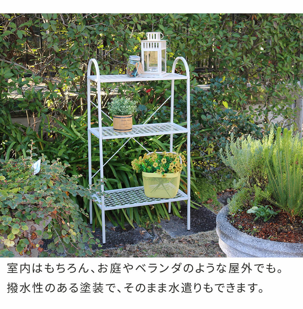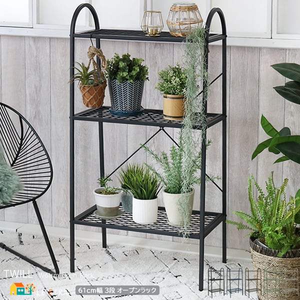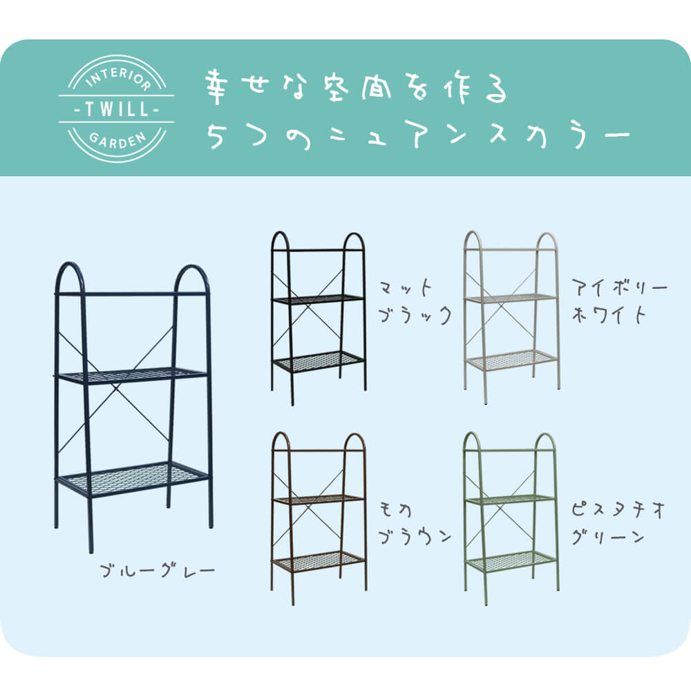 3段ラック 3段収納ラック オープンラック ディスプレイラック ブラック ブラウン ブルー グリーン アイボリー おすすめ おしゃれ 北欧 モダン スタイリッシュ ベランダ 玄関 バルコニー テラス 室内 屋外 屋内 ラック 収納棚 植木鉢ラック プランターラック 観葉植物ラック メッシュ仕様棚 スチールラック