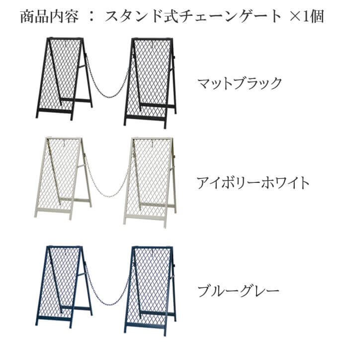 チェーンゲート スタンド式チェーンゲート 自立式チェーンゲート ブラック ブルー アイボリー おすすめ おしゃれ 北欧 モダン スタイリッシュ 折りたたみ 折り畳み式チェーンゲート 分割可能 省スペース コンパクト収納 隙間に収納 薄型収納 駐車場 侵入禁止 Uターン禁止 ガレージ 庭 境界線 間仕切り