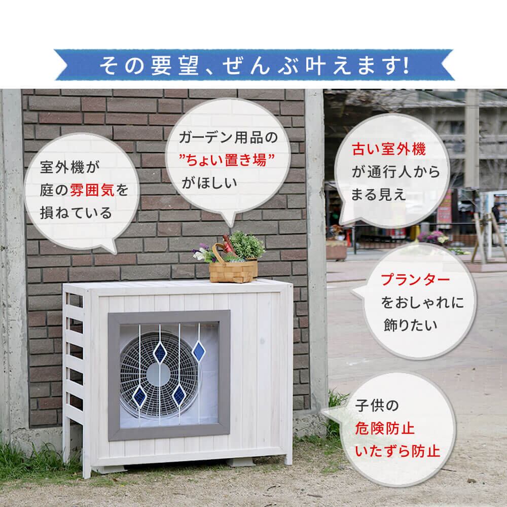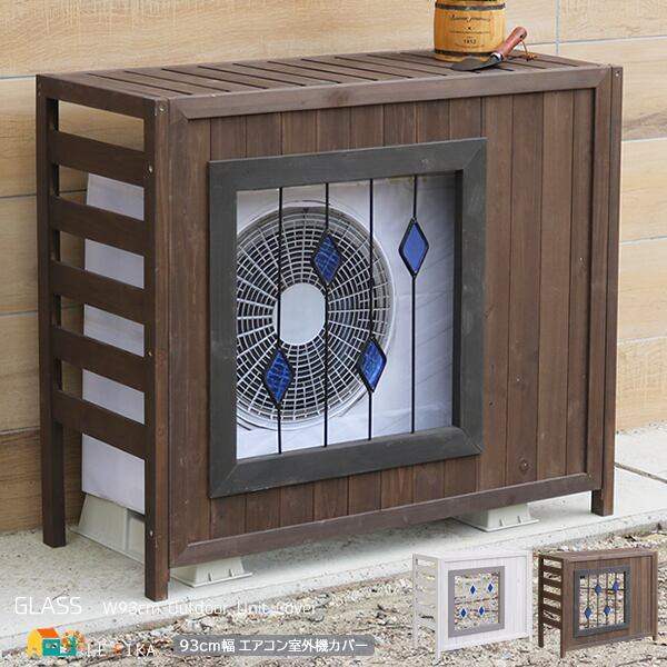 室外機カバー エアコン室外機カバー 93cm幅 木製 ステンドグラス 天然木 ガーデニング おすすめ おしゃれ 北欧 モダン スタイリッシュ 植木鉢台 庭 花壇 庭園 菜園 鉢置き台 デッドスペース活用 エクステリア ブラウン ホワイト 茶色 白 プランター台 プランター置き 鉢植え置き 植木鉢置き ガーデニング用品置き