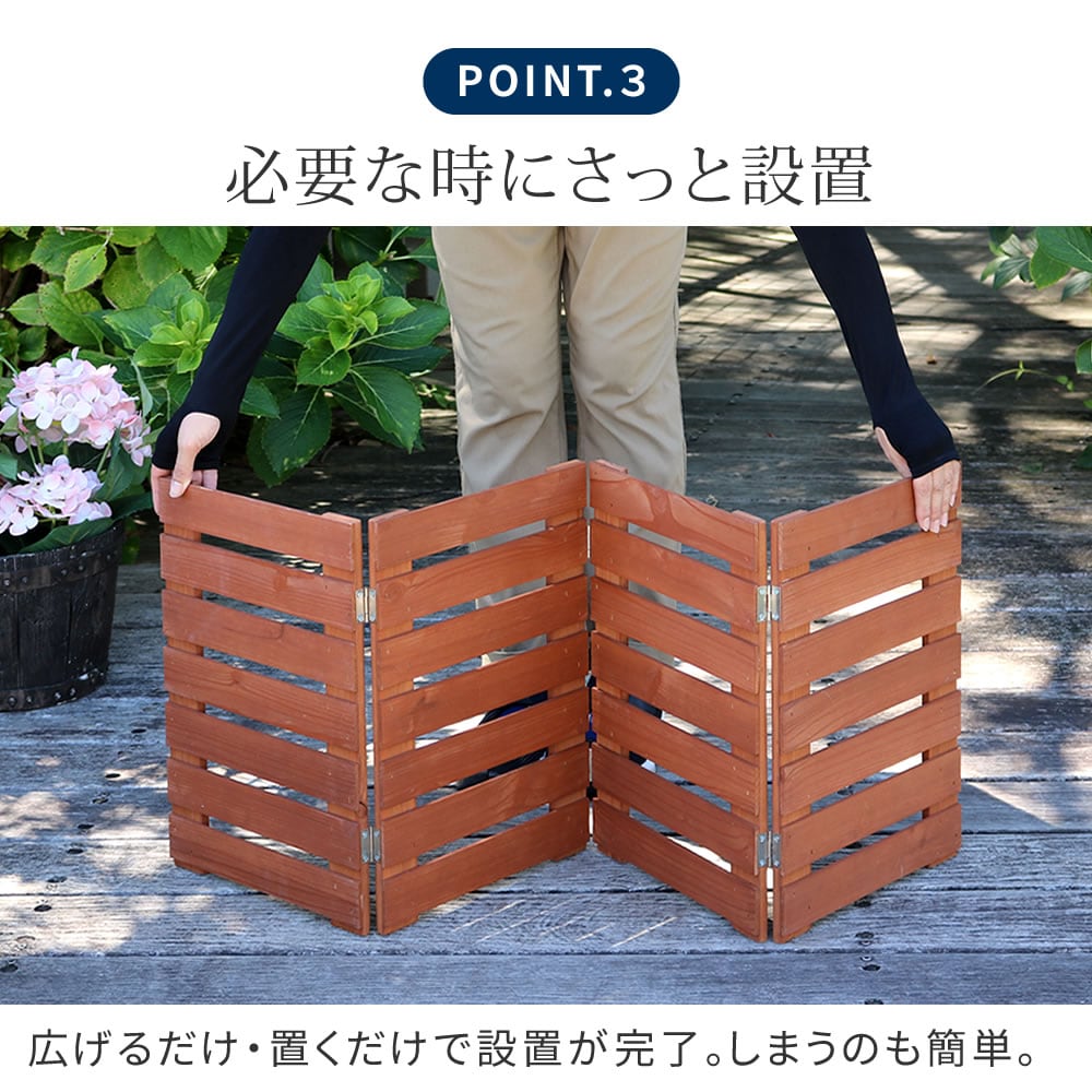 折り畳み式で、好きな時に出して、コンパクトに収納できる便利な木製フェンス2枚セットです。