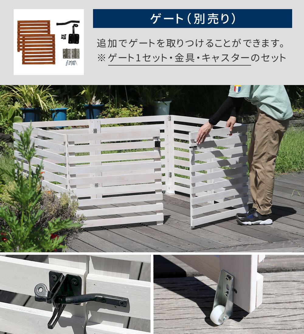 別売りのゲートを付けることで、お庭や花壇の入り口に設置したり、ペットサークルを作ったり等、思い通りの庭をつくることができます。