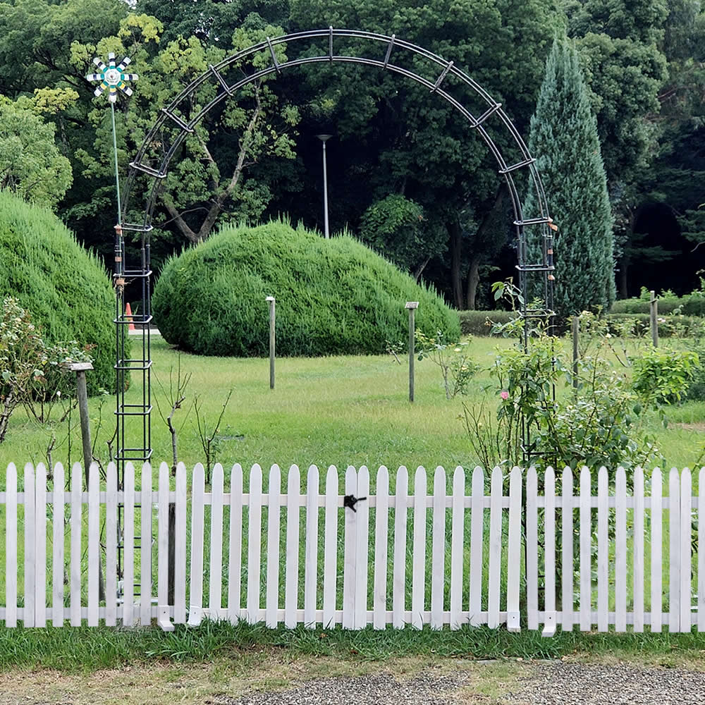 開閉金具付きでしっかり閉まるので、風でパタパタすることもない、ストライプフェンス用のガーデンゲート1セットです。