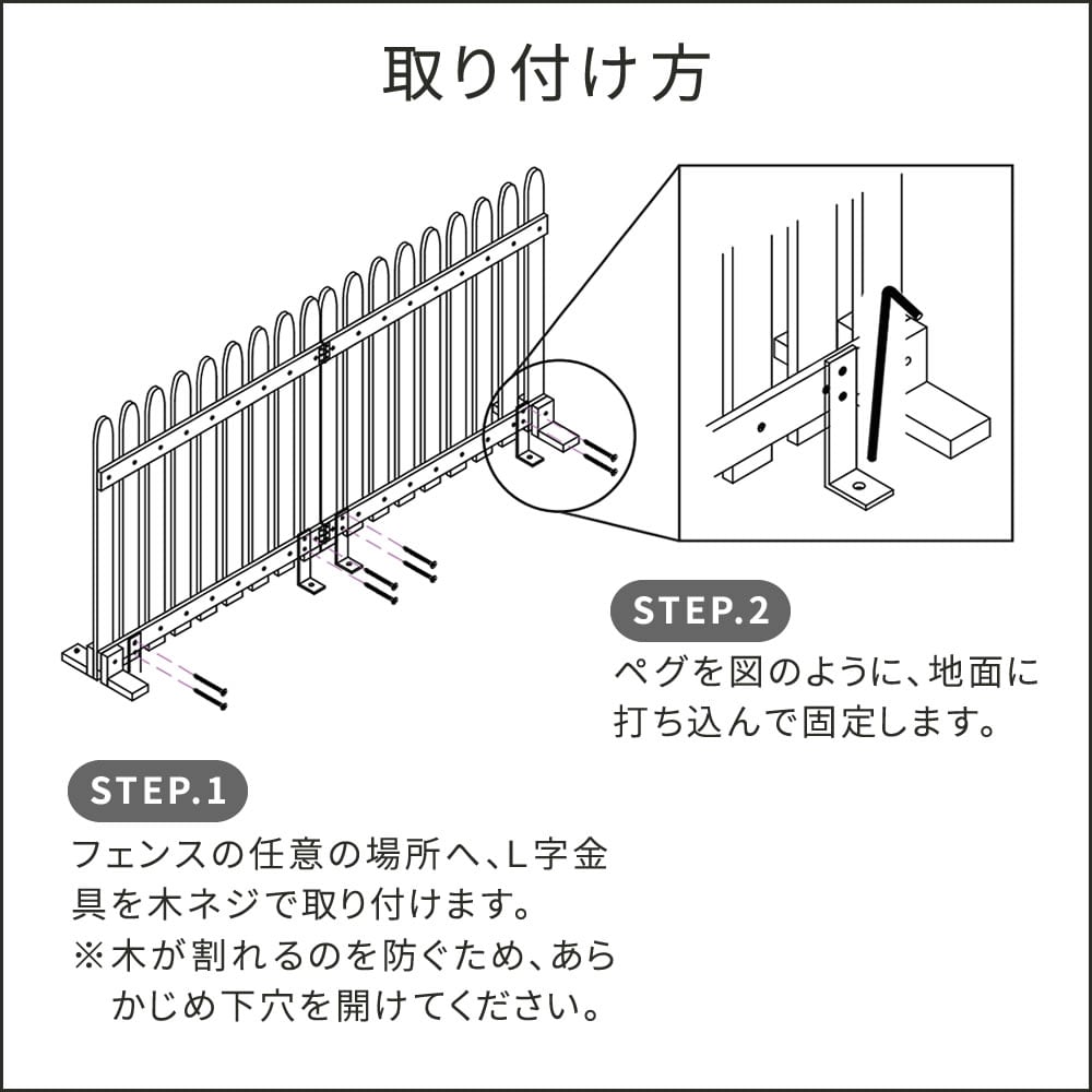 ・こちらの商品は「折り畳めるウッドフェンス160」「折り畳めるウッドフェンス142×71」の専用固定金具となります。お間違えのないように、ご注意ください。(ご不明な際にはお問い合わせ頂ければ幸いでございます。)