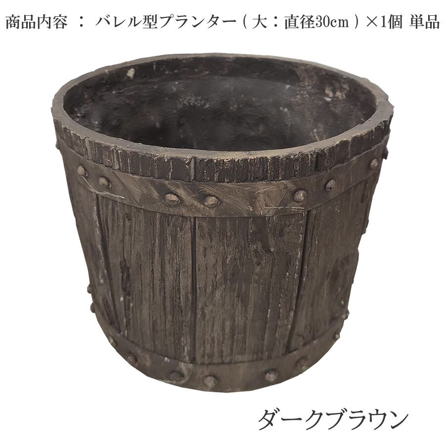 バレル型プランター 直径30cmタイプ プランター ガーデンプランター 鉢植え 植木鉢 30cm幅 ダークブラウン おすすめ おしゃれ 北欧 モダン プランターカバー 庭 ガーデニング 花壇 玄関 ベランダ バルコニー 菜園 庭園 家庭菜園 観葉植物 多肉植物 野菜 果物 バラ トマト ミニトマト コマツナ シシトウ トウガラシ ワケギ アサツキ ナス ミズナ アリッサム ガウラ クレマチス スミレ チューリップ ハゴロモジャスミン