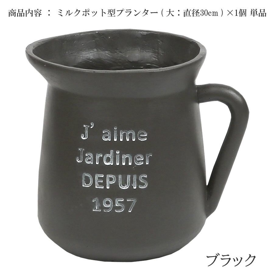 ミルクポット型プランター 大サイズ 30cm幅タイプ 全幅38.5cm プランター ガーデンプランター 鉢植え 植木鉢 ブラック おすすめ おしゃれ 北欧 モダン プランターカバー 庭 ガーデニング 花壇 玄関 ベランダ バルコニー 菜園 庭園 家庭菜園 観葉植物 多肉植物 野菜 果物 バラ トマト ミニトマト コマツナ シシトウ トウガラシ ワケギ アサツキ ナス ミズナ アリッサム ガウラ クレマチス スミレ チューリップ ハゴロモジャスミン 牧場 ガーデングッズ収納 鉢カバー