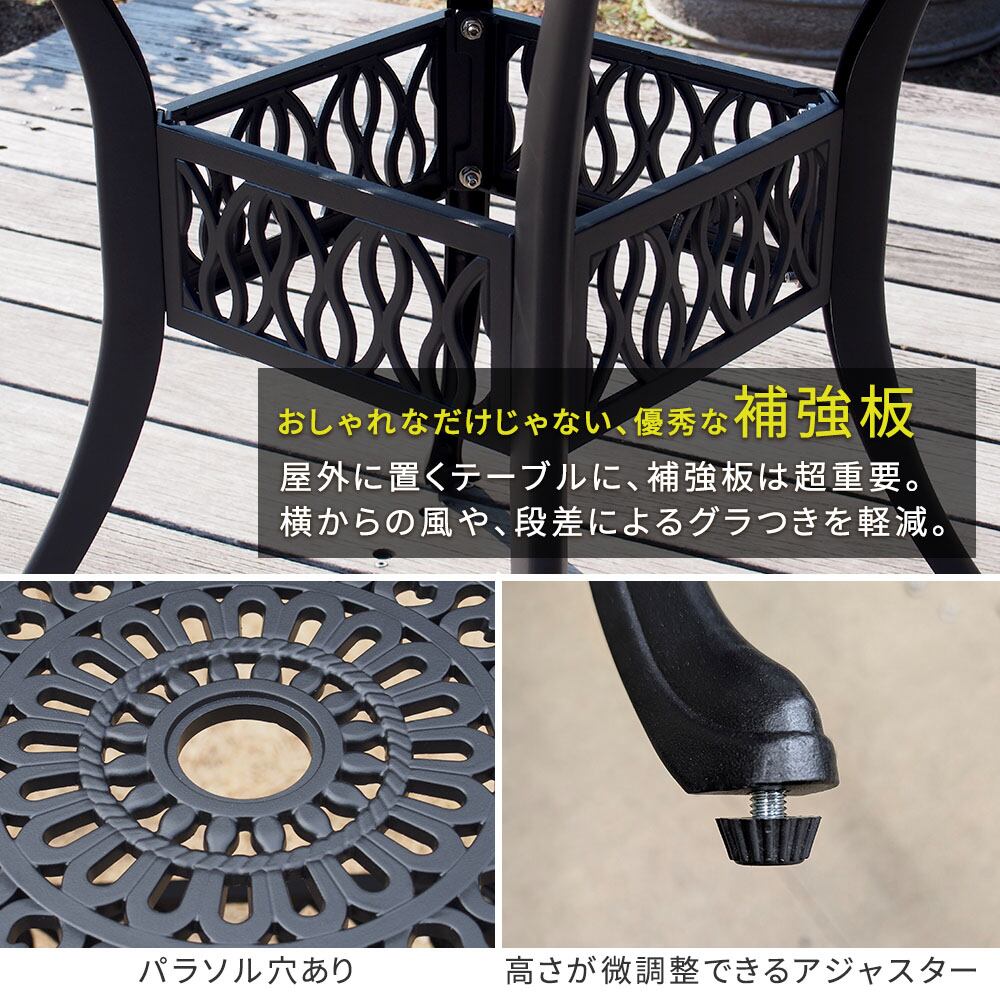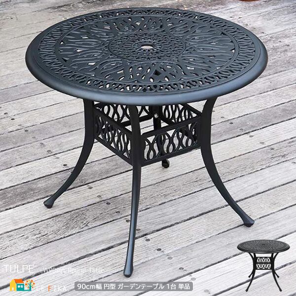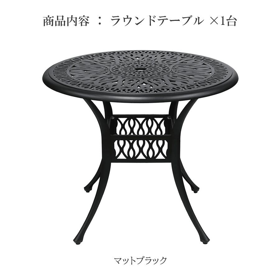ガーデンテーブル 90cm幅 マットブラック アルミテーブル ラウンドテーブル 円型テーブル 丸型テーブル 円形テーブル 丸形テーブル 丸机 丸テーブル 庭のテーブル ベランダのテーブル おすすめ おしゃれ モダン クラシカル アルミ机 パラソル穴付き ガーデンラウンドテーブル 庭 ベランダ バルコニー エントランス テラス 菜園 庭園 アウトドアテーブル エクステリア
