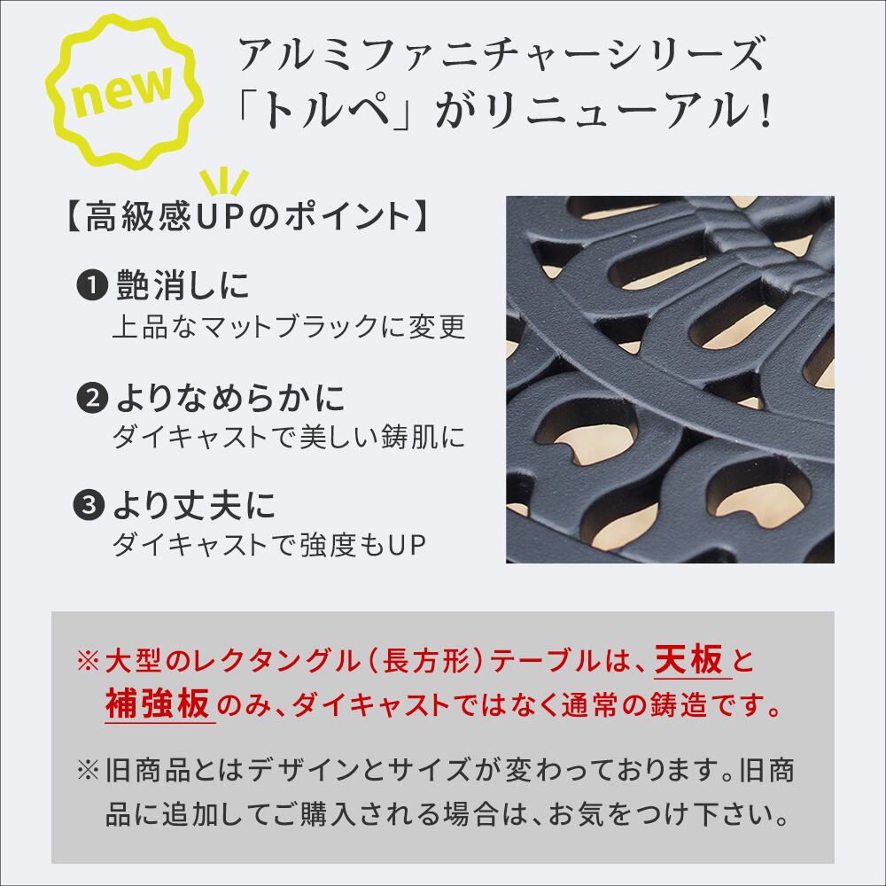 アルミファニチャーは錆に強く、汚れたら拭くだけでお手入れも簡単なので、屋外で日常使いしやすい素材です。