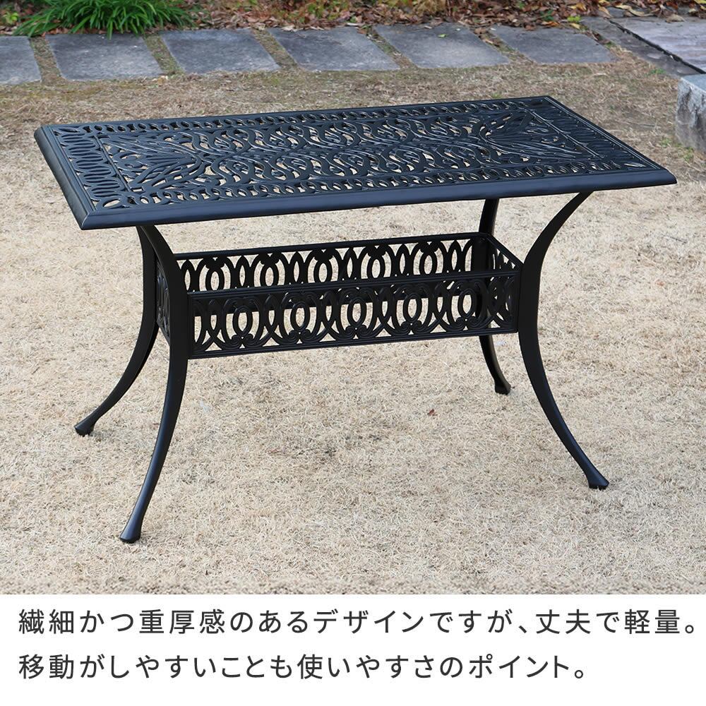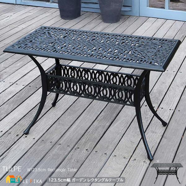ガーデンテーブル 123.5cm幅 マットブラック アルミテーブル レクタングルテーブル 長方形テーブル テラスのテーブル 庭のテーブル ベランダのテーブル おすすめ おしゃれ モダン クラシカル アルミ机 ガーデンレクタングルテーブル 庭 ベランダ バルコニー エントランス テラス 菜園 庭園 アウトドアテーブル エクステリア