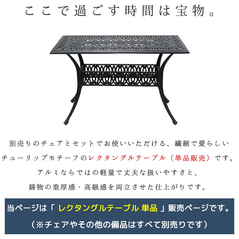 繊細で愛らしいチューリップモチーフの123.5cm幅ガーデンレクタングルテーブル1台単品です。