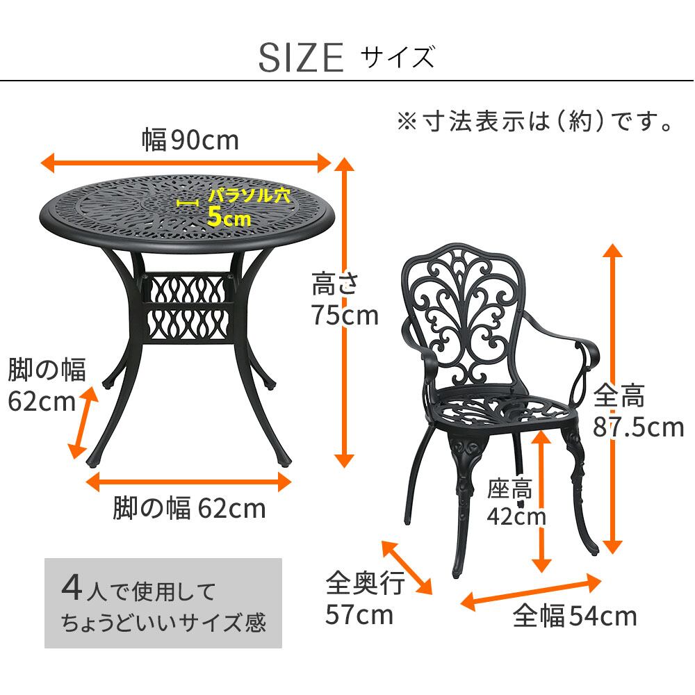 ・ラウンドテーブル:幅90cm、奥行90cm、高さ75cm