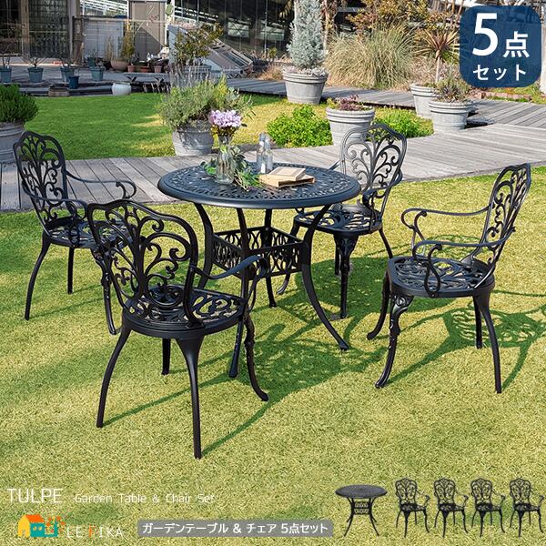 流行に左右されない上品で精緻なデザインで、置くだけで家全体の外観や、室内からの景色を変えてくれるガーデンテーブルとガーデンチェアの5点セットです。