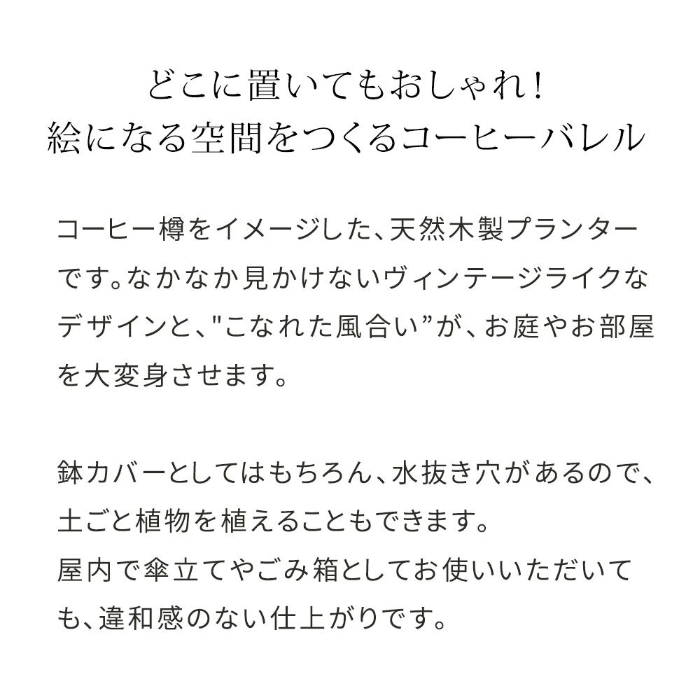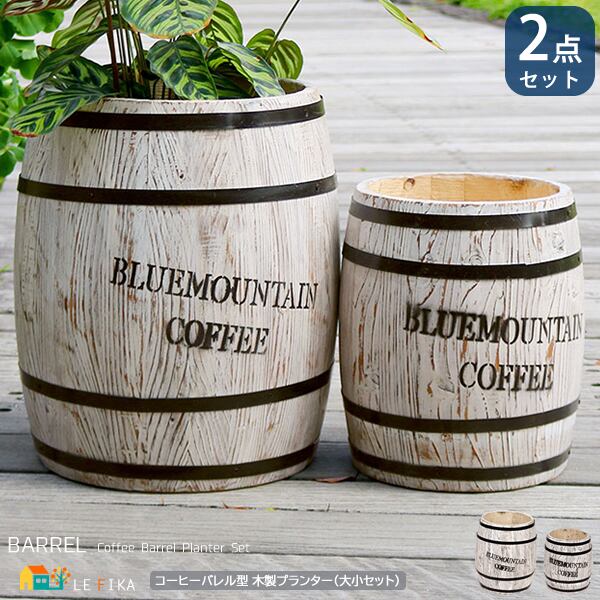 コーヒー樽をイメージしたおしゃれな木製プランター大小2点セットです。