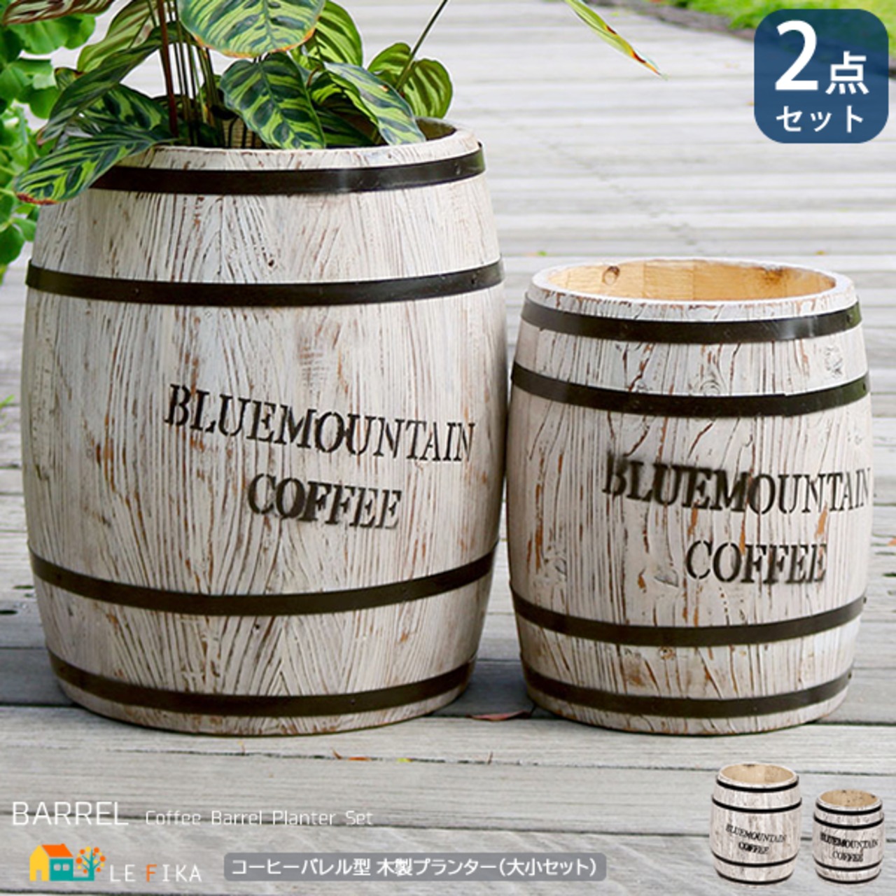 ■商品内容:コーヒーバレル型木製プランター大小セット×1セット