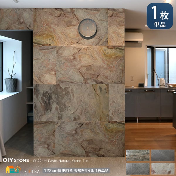 本物の天然石をスライスし、ホテルライクな上質空間を演出してくれる122cm幅の貼れる天然石タイル1枚単品です。