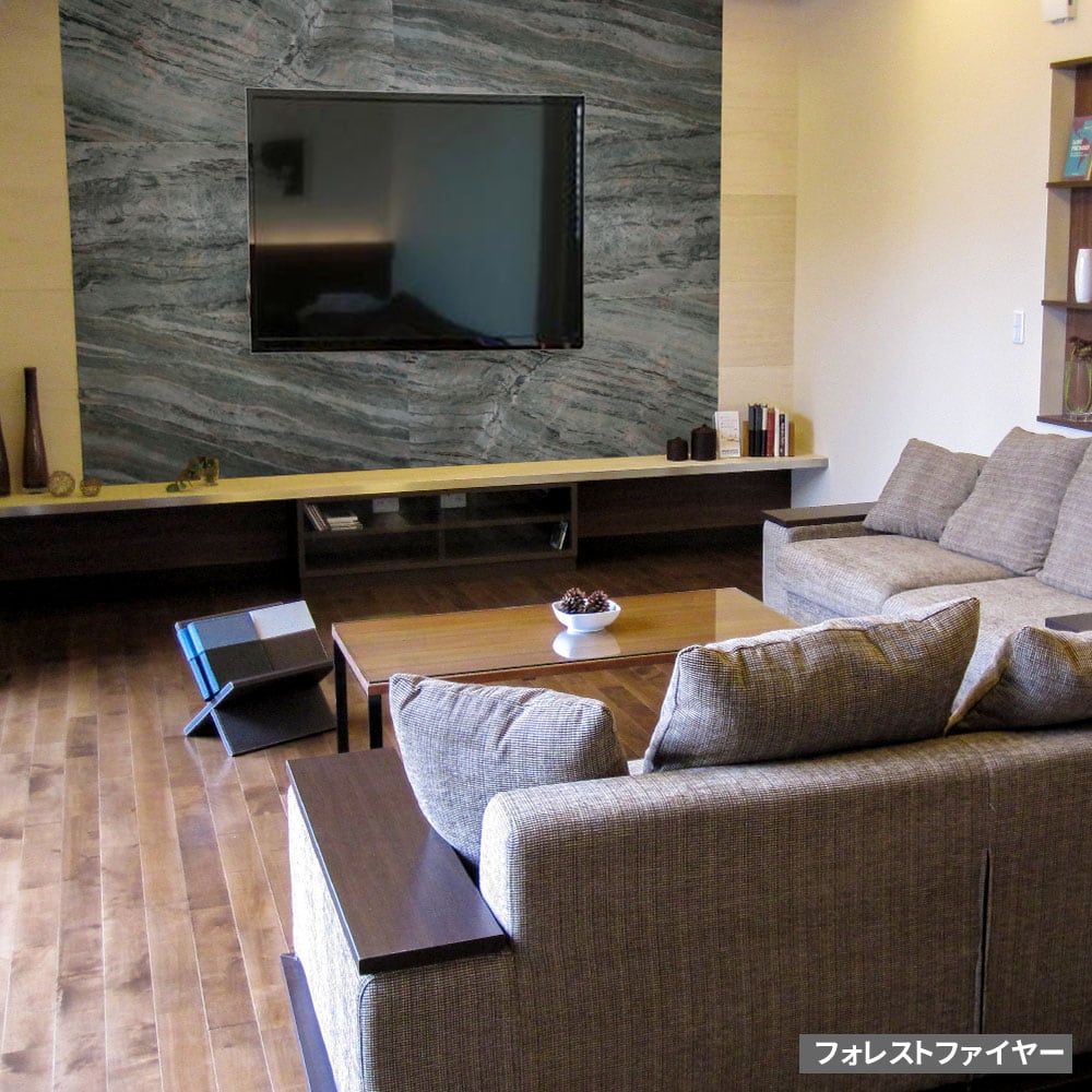 風格と高級感を持つ天然石を特殊な技術で厚さ(約)2mmのタイルに加工しており、軽量化と耐久性を備えた、大がかりな工事なしで、上質な空間を演出する天然石タイルです。