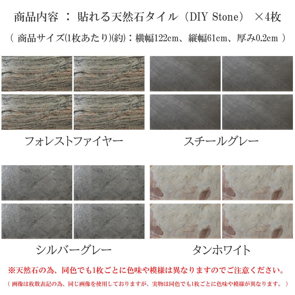 貼れる天然石タイル 4枚セット 横幅122cm 縦幅61cm 厚み0.2cm DIY ストーン シルバーグレー スチールグレー フォレストファイヤー タンホワイト 天然石タイル カットできる 円柱施工可能 カーブ面施工 Fフォースター カット可能 おすすめ おしゃれ 同色4枚組 石柄 壁に貼れる