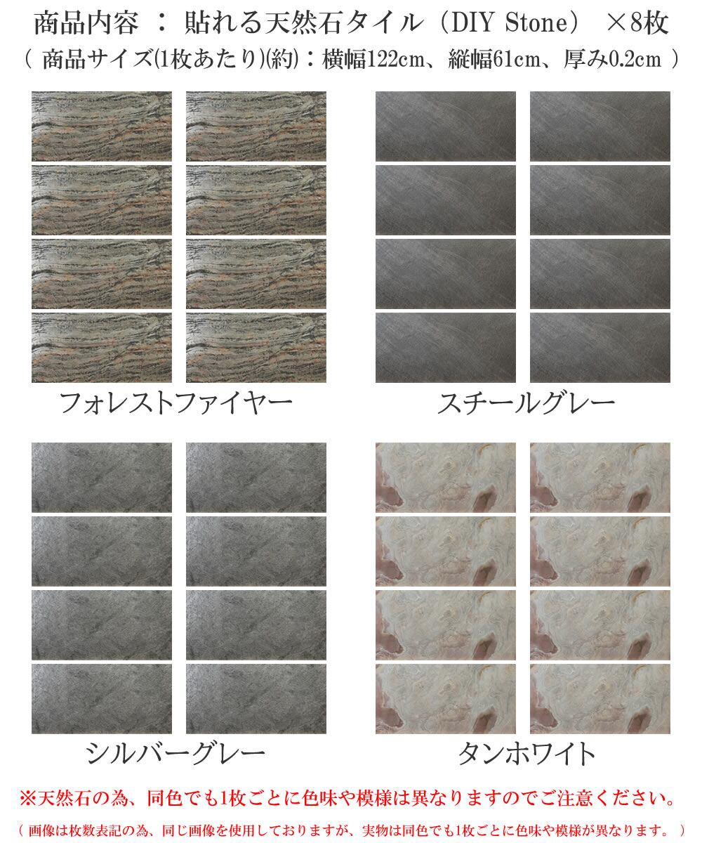 貼れる天然石タイル 8枚セット 横幅122cm 縦幅61cm 厚み0.2cm DIY ストーン シルバーグレー スチールグレー フォレストファイヤー タンホワイト 天然石タイル カットできる 円柱施工可能 カーブ面施工 Fフォースター カット可能 おすすめ おしゃれ 同色8枚組 石柄 壁に貼れる