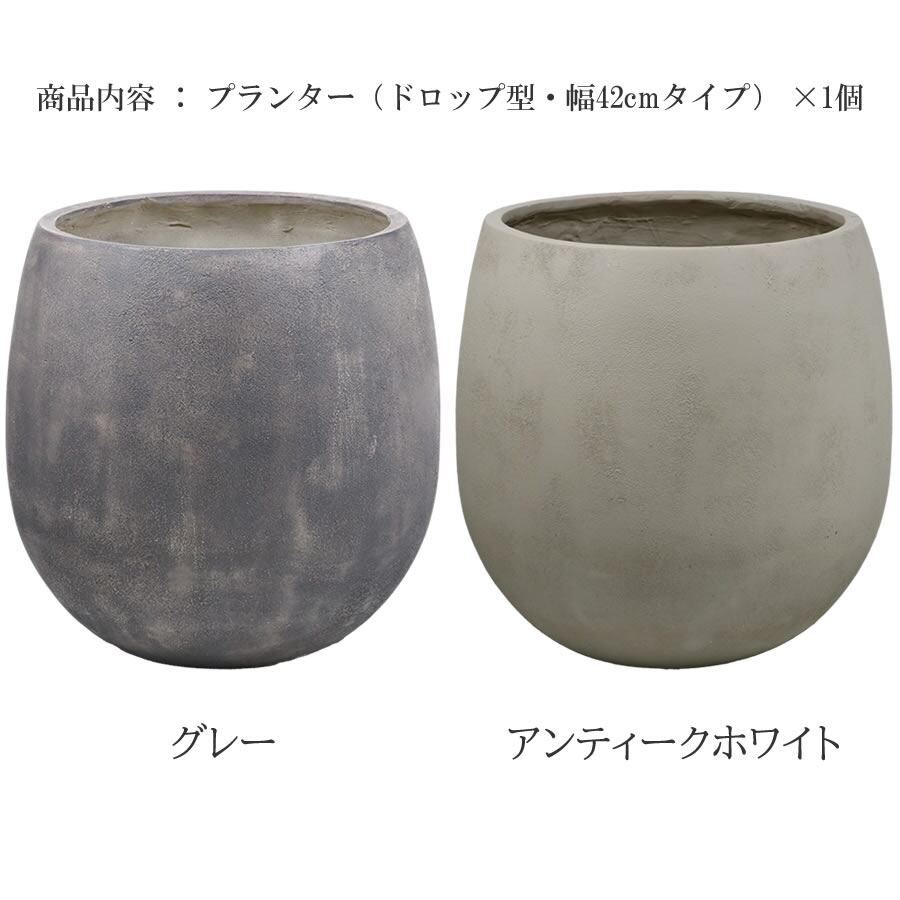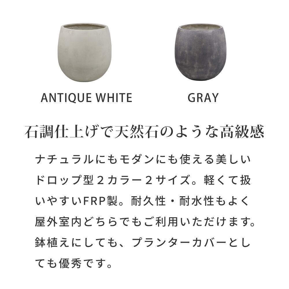 ドロップ型プランター 42cm幅 1個単品 グレー アンティークホワイト 水抜き穴付き プランター 鉢植え 植木鉢 プランターカバー 植木鉢カバー 鉢植えカバー FRP製 ガーデニング DIY 庭 ベランダ バルコニー テラス ドロップ型 しずく型 石調 ストーン調 石柄プランター 庭園 花壇 菜園 観葉植物 多肉植物 野菜 果物 スミレ チューリップ ジャスミン マリーゴールド モッコウバラ アリッサム ガウラ クレマチス テイカカズラ スイセン ダリア