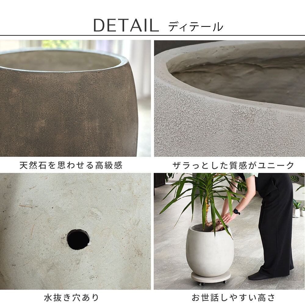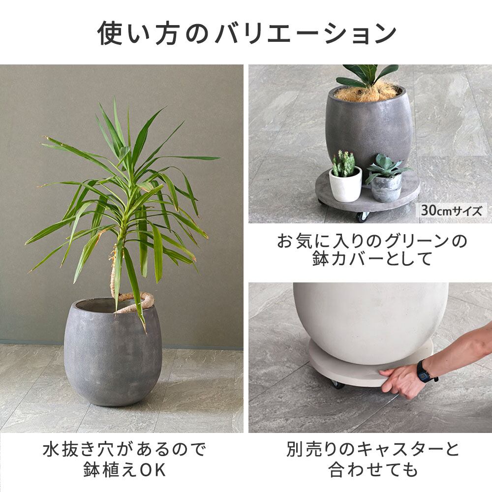 水抜き穴があるので、鉢植えとしての使用はもちろん、プランターカバーとしても使いやすくデザイン性と機能性を備えたプランターです。