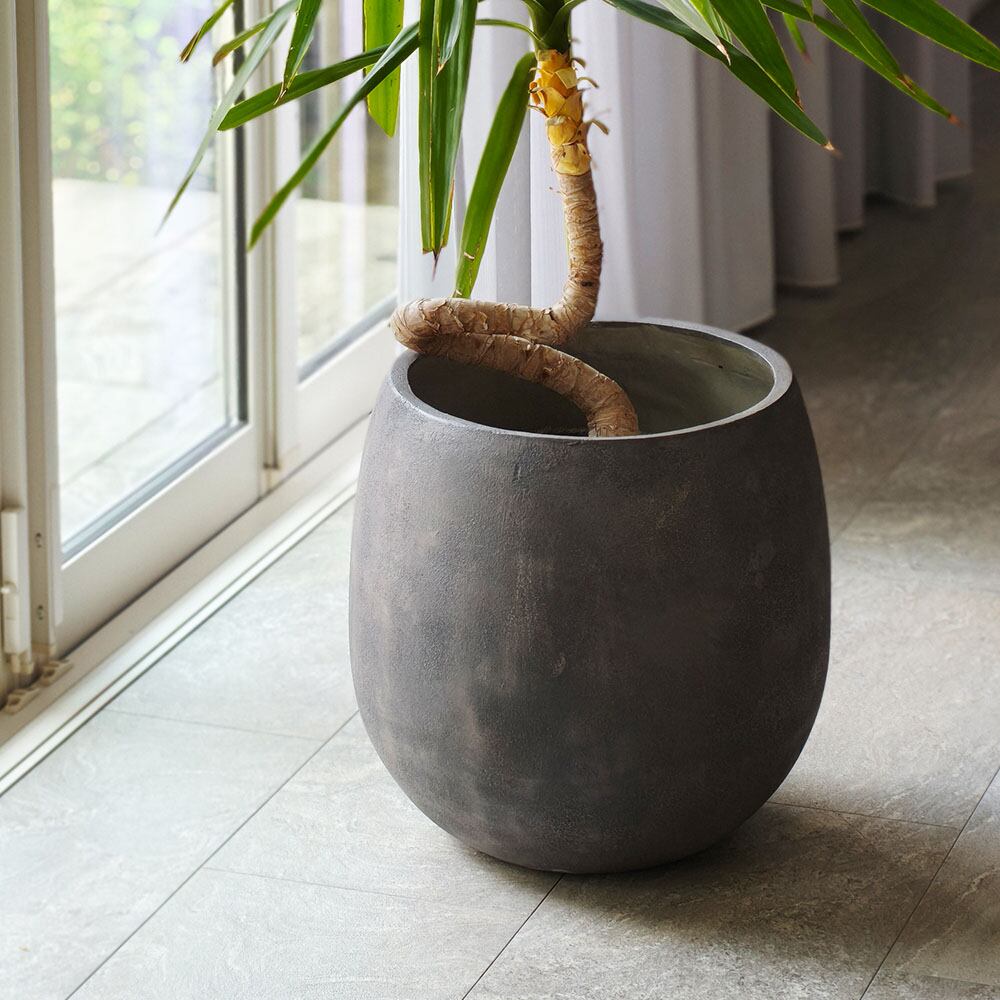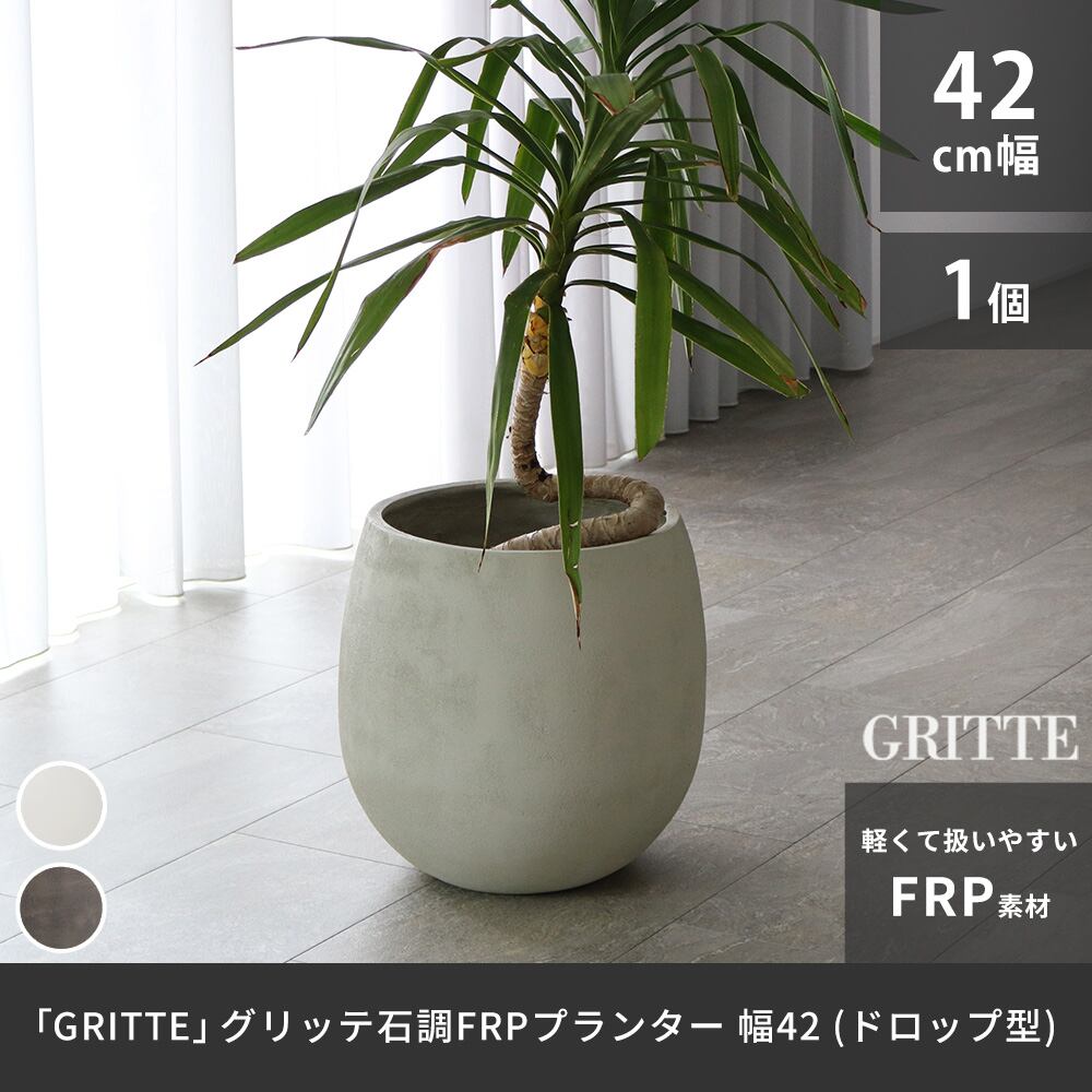 石調仕上げで天然石のような高級感が漂うFRP素材を使用した42cm幅のドロップ型プランター1個単品です。