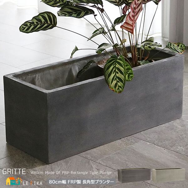石調仕上げで天然石のような高級感が漂うFRP素材を使用した80cm幅の長角型プランター1個単品です。