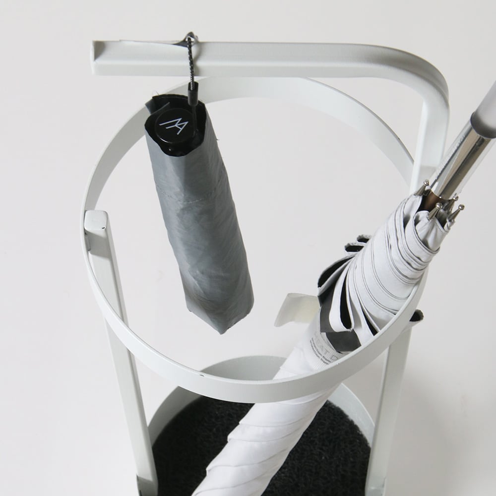 ハンドル部分は折り畳み傘などもひっかけられるフックデザイン仕様の20cm幅のサークルタイプの傘スタンド同色2台セットです。