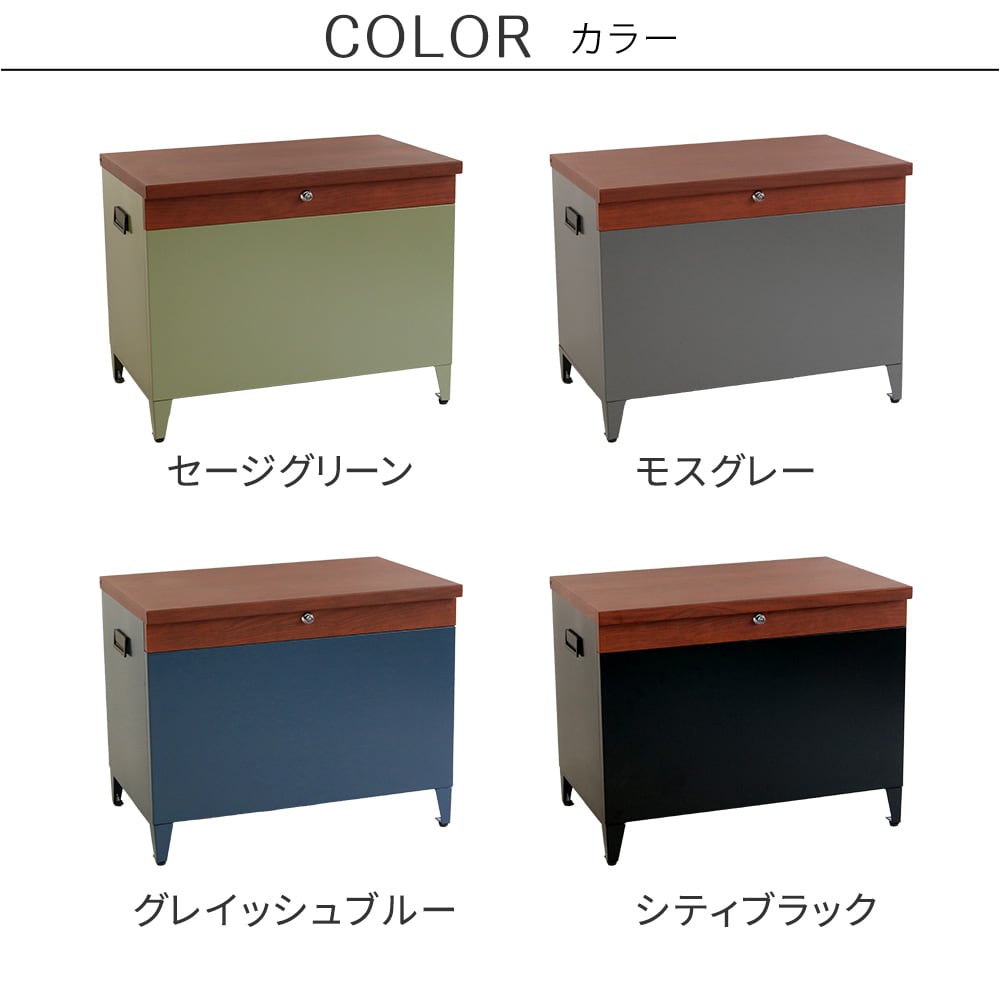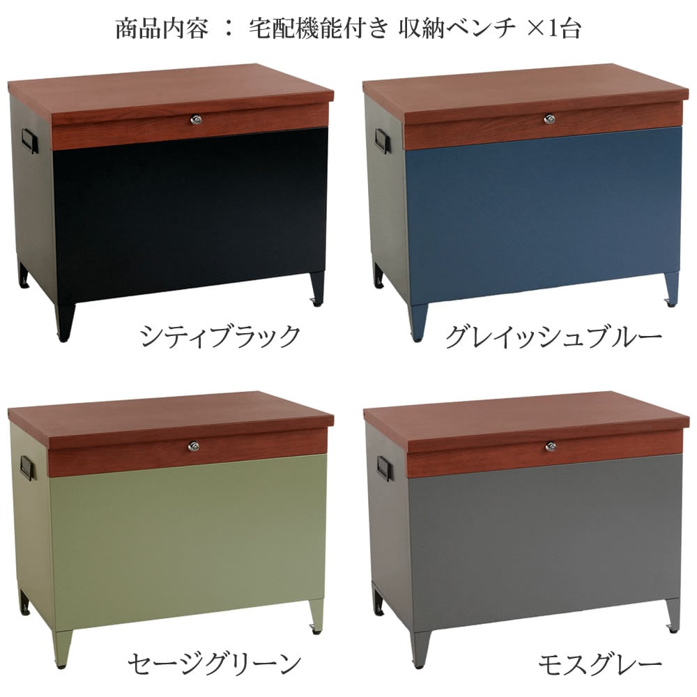 収納ベンチ 65cm幅 シティブラック グレイッシュブルー セージグリーン モスグレー 宅配ボックス 宅配機能付き 玄関ベンチ スチール製 おすすめ おしゃれ モダン 収納付きベンチ 宅配機能付ベンチ 幅65cm 奥行43cm 高さ52cm 園芸用品収納 灯油タンク収納 背もたれ無しベンチ