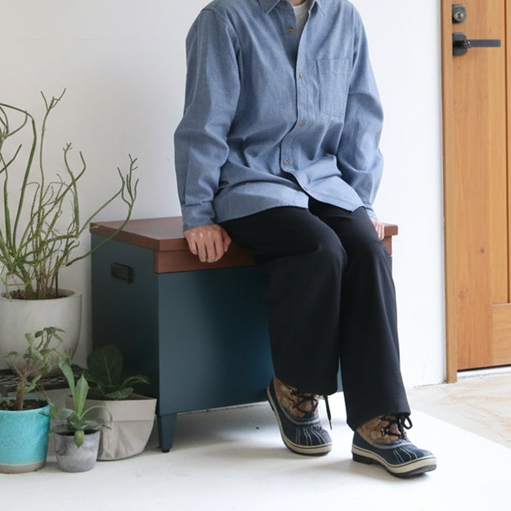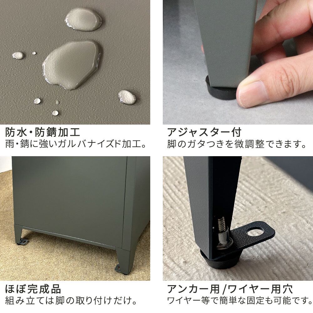頑丈で耐久性に優れたスチール素材製で、粉体塗装を施すことで傷や錆に強く使い勝手の良い収納ベンチです。(傷や溶接部にサビが発生する場合がありますのでご注意ください。)