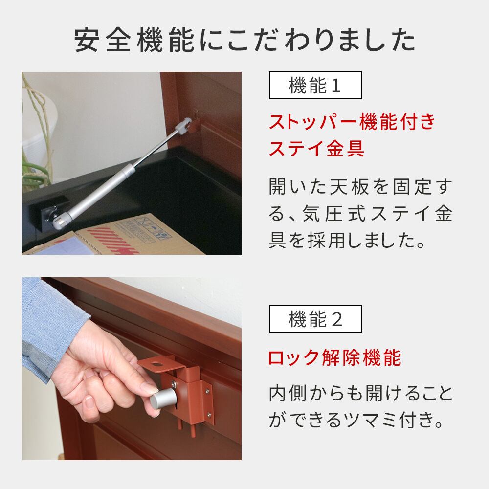 宅配ボックス機能を搭載しており、もちろん鍵付きなのでセキュリティ面でも安心の収納ベンチです。