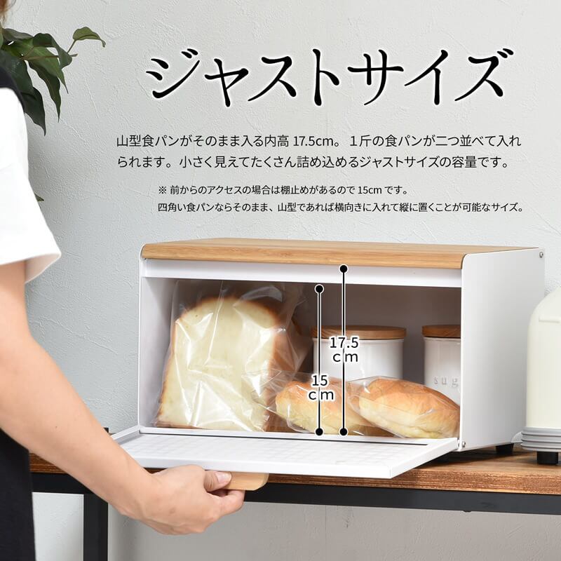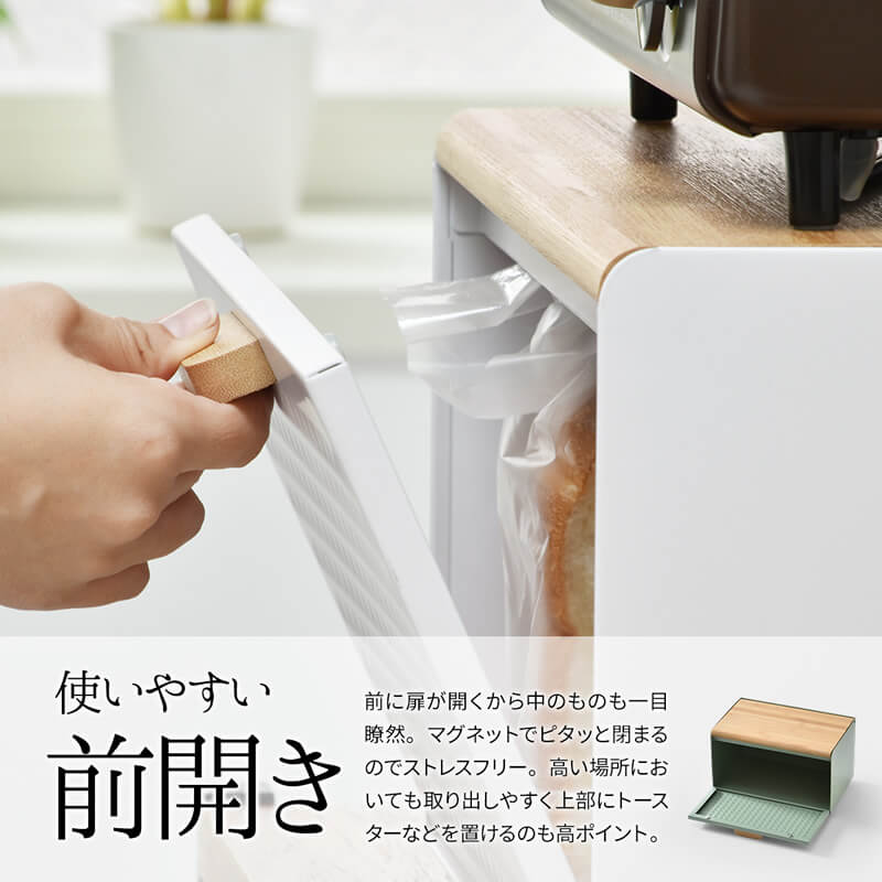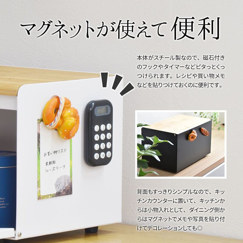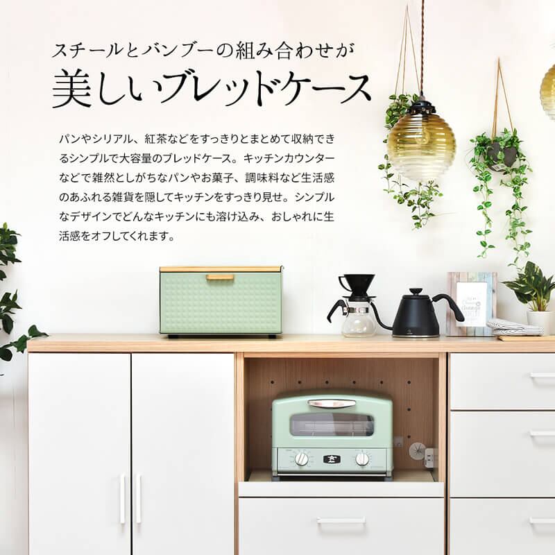 雑然としがちなパンやお菓子、調味料などを収納できるシンプルで大容量のブレッドケースです。