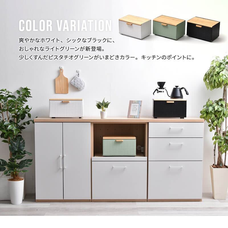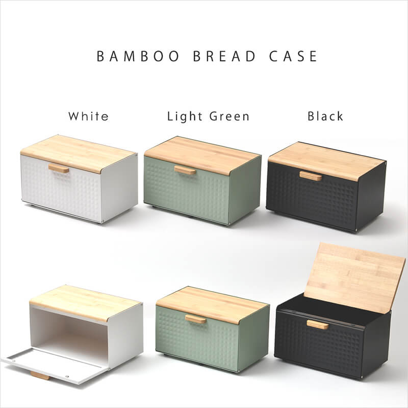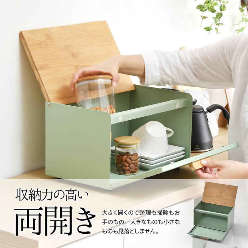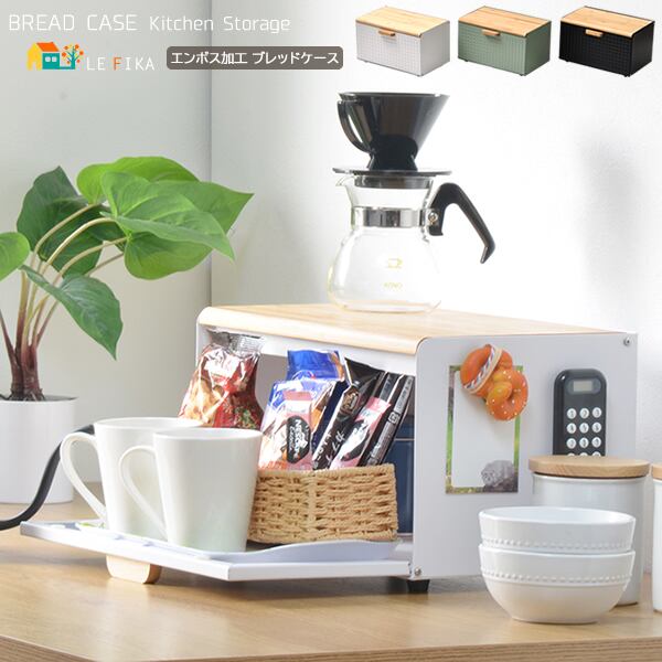 ブレッドケース キッチン収納 収納ボックス 収納箱 おすすめ おしゃれ 北欧 ブラック ホワイト ライトグリーン 黒 白 緑 完成品 調味料収納 前開き 上開き 両開き エンボス加工 モダン 食べ物収納