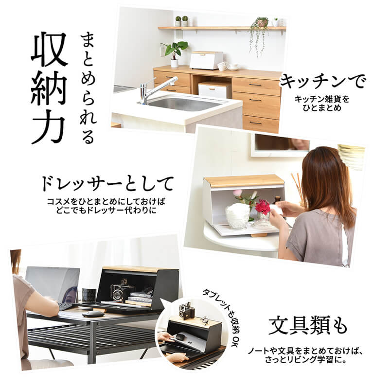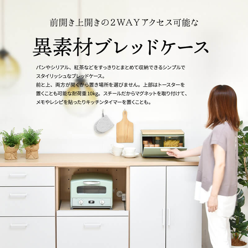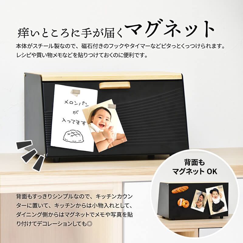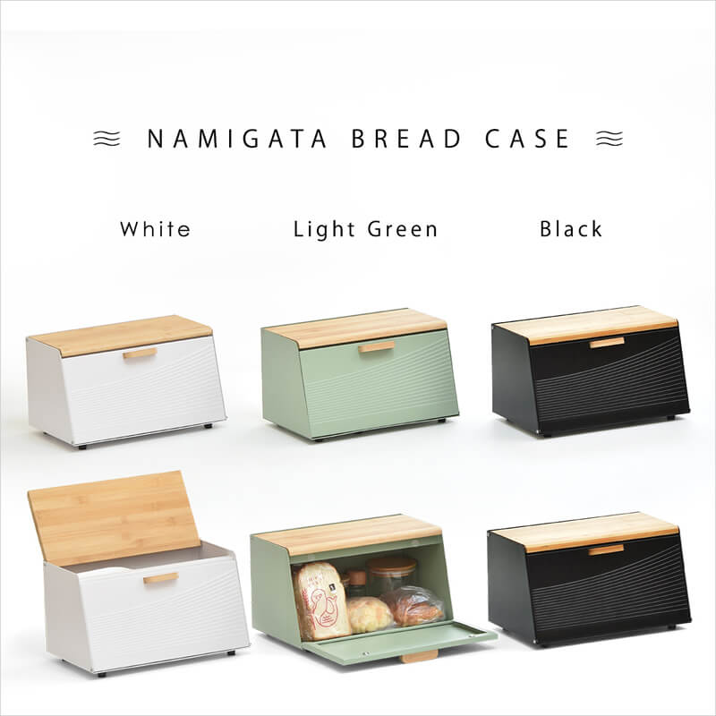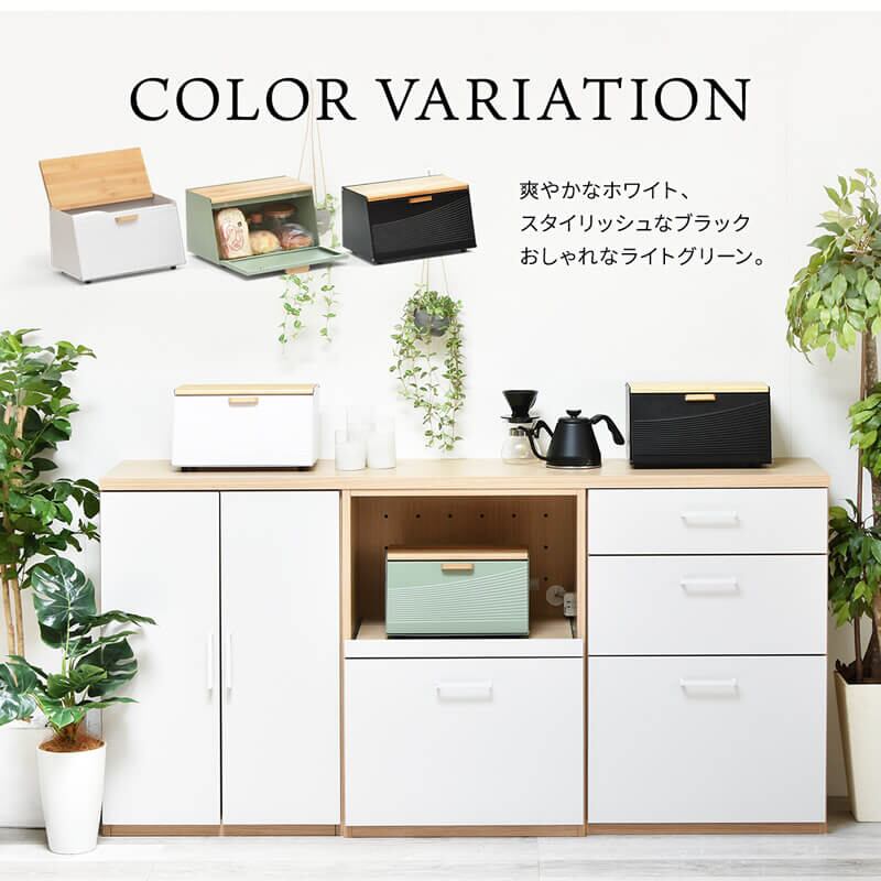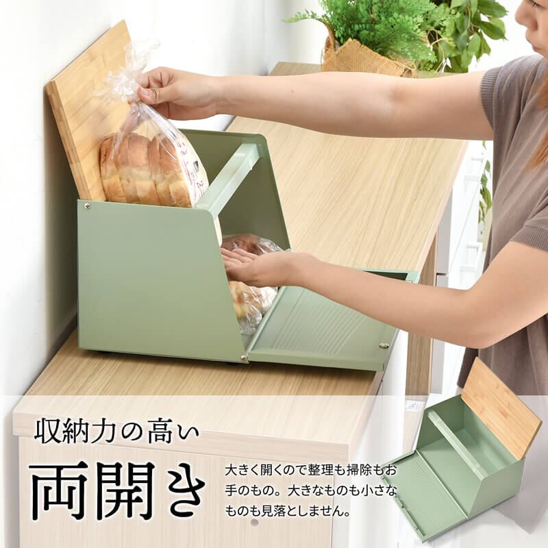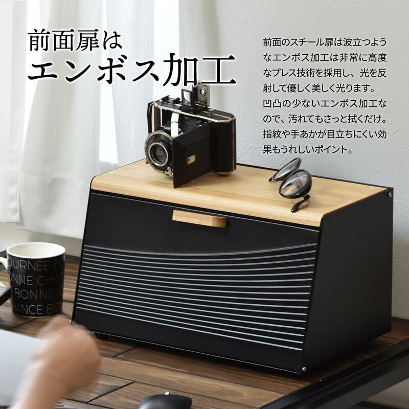 ブレッドケース キッチン収納 収納ボックス 収納箱 おすすめ おしゃれ 北欧 ブラック ホワイト ライトグリーン 黒 白 緑 完成品 調味料収納 前開き 上開き 両開き エンボス加工 モダン 食べ物収納