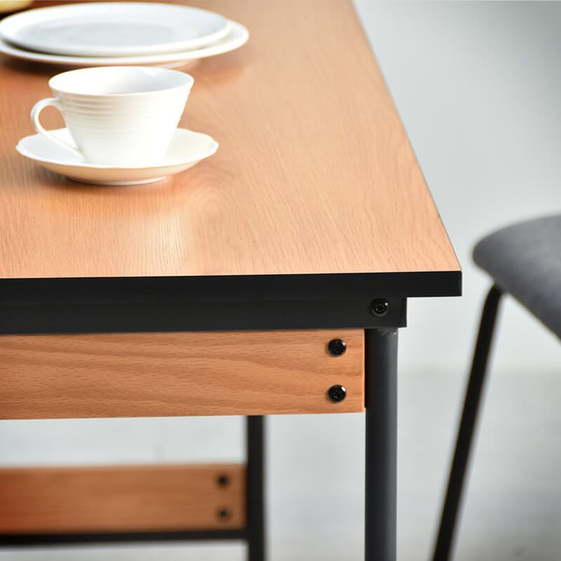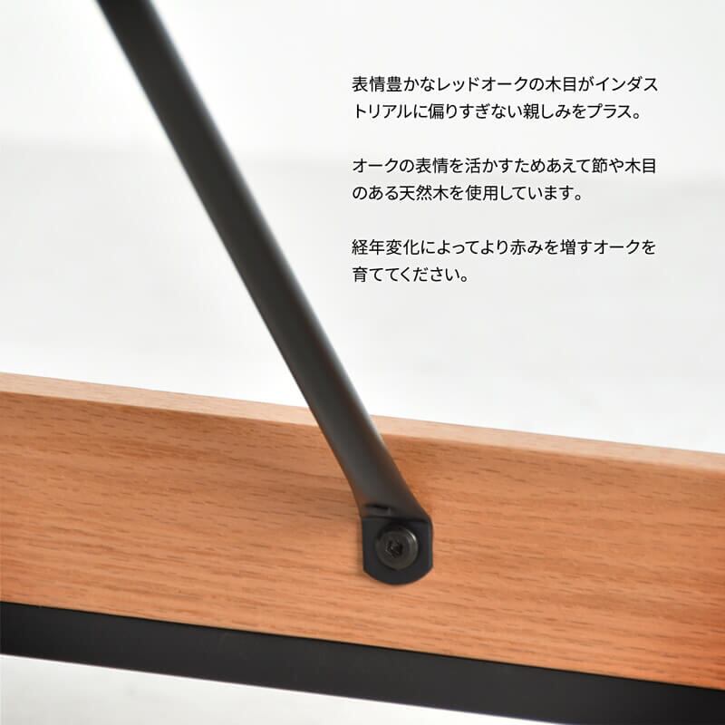 シャープな印象の細くクールなアイアンフレームと、異素材となるレッドオーク材を補強材に使用したおしゃれなダイニングテーブルです。