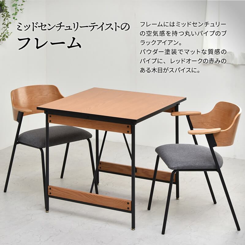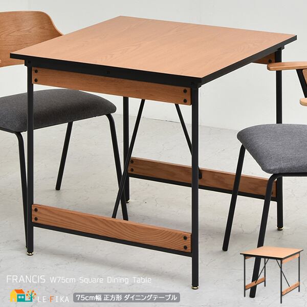 ダイニングテーブル 75cm幅 正方形 1台単品 食卓用机 2人用ダイニングテーブル 食卓用テーブル スチール脚 幅75cm 奥行75cm 高さ72cm おすすめ おしゃれ 北欧 ミッドセンチュリー モダン スタイリッシュ 天然木使用 コンパクト 省スペース テーブル 机 正方形テーブル
