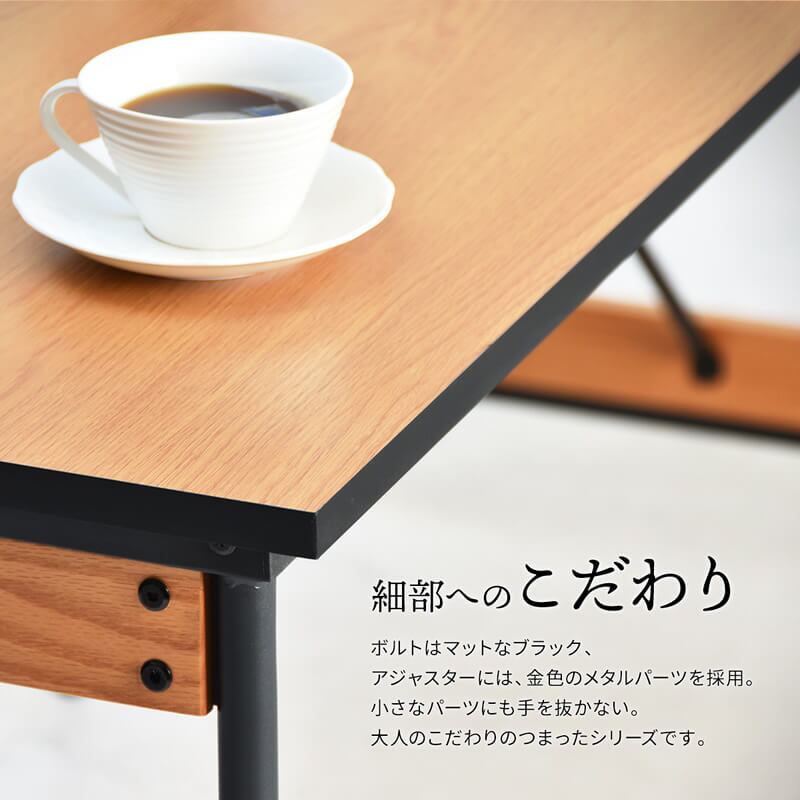 マットなパウダー塗装のブラックフレームに、シャープなメラミン天板が特徴の75cm幅の正方形ダイニングテーブル1台単品です。