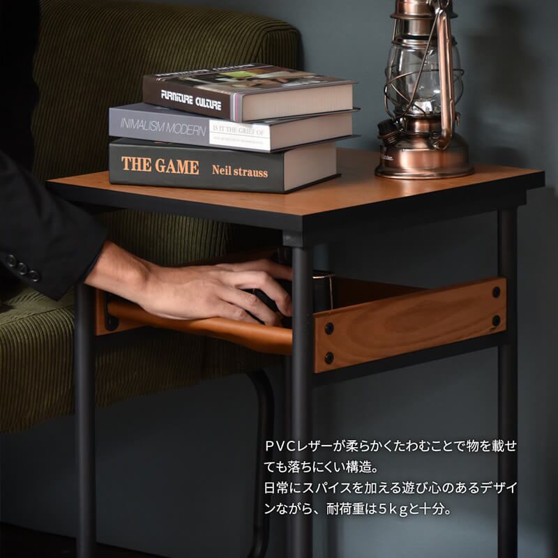 サイドテーブル 40cm幅 ブラウン ブラック スチールフレーム PVCレザー 収納付きテーブル 収納付きサイドテーブル コンパクトテーブル スリム 省スペース PVCレザー 天然木使用 おすすめ おしゃれ 北欧 モダン ミッドセンチュリー 机 サブテーブル
