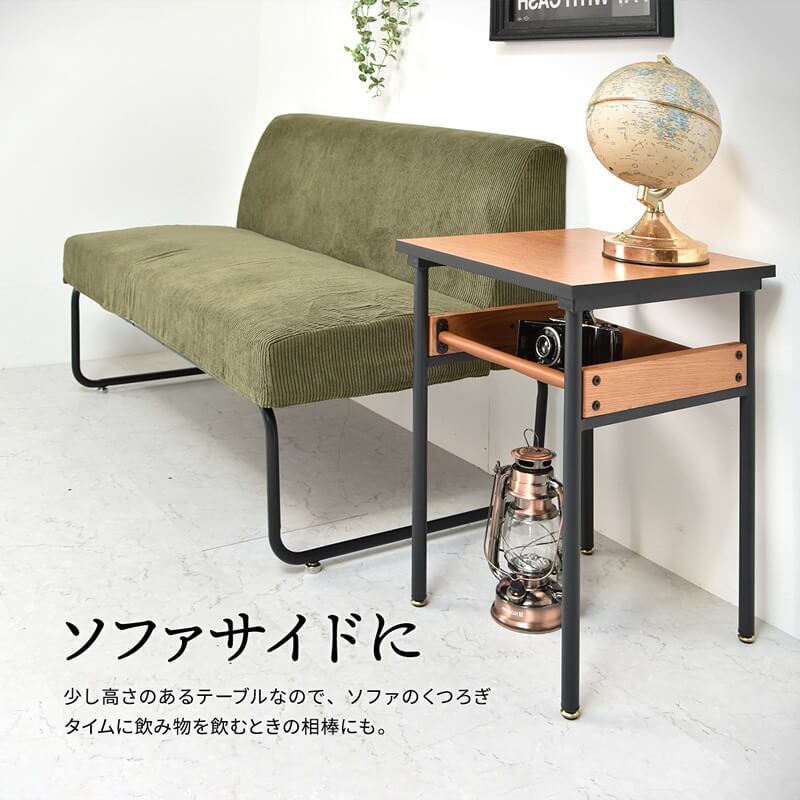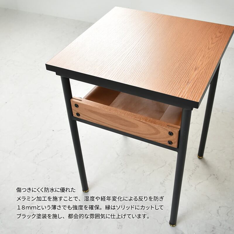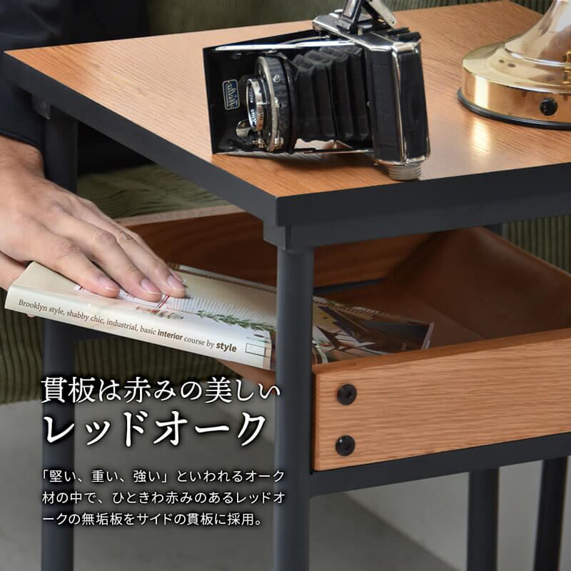 レッドオーク材を側面に採用し、天板は傷がつきにくいメラミン貼りのサイドテーブルです。