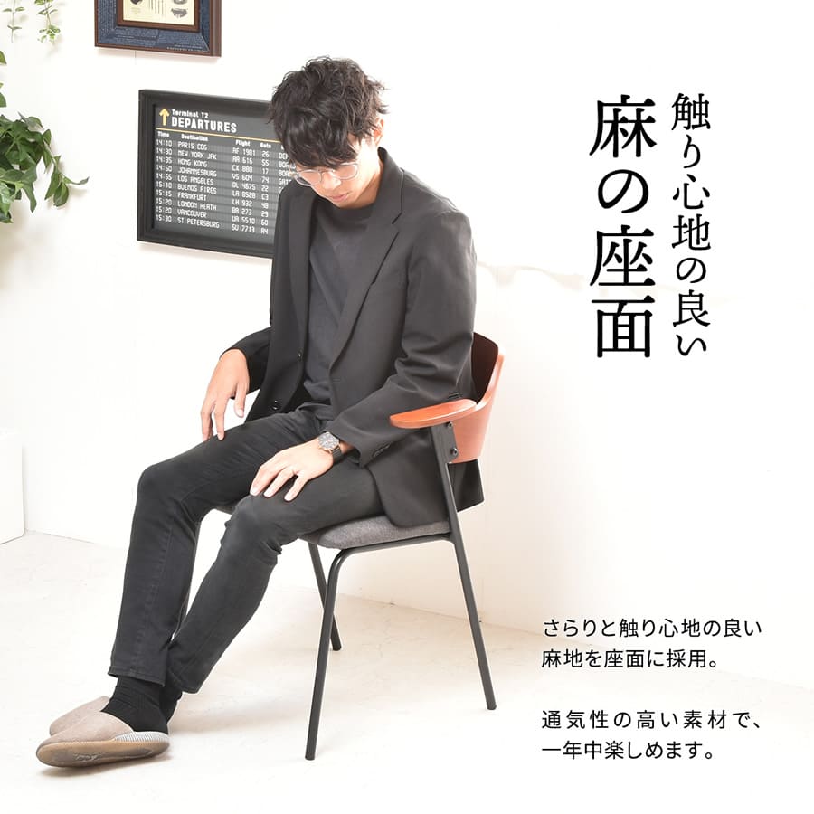 高密度ウレタンに麻の張地を採用した座面は座り心地がよいダイニングチェアです。