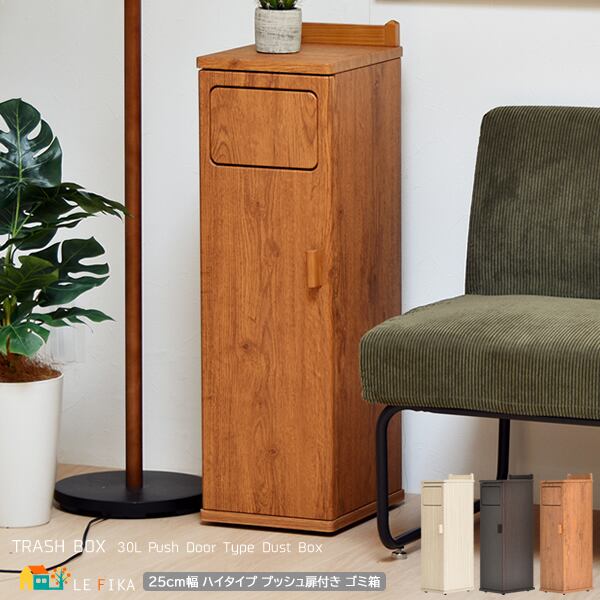 ゴミ箱 25cm幅 ハイタイプ ダストボックス トラッシュボックス プッシュ扉付きゴミ箱 プッシュ扉式 おすすめ おしゃれ 北欧 モダン スタイリッシュ スリム 省スペース コンパクト 匂いにくい ブラウン ダークブラウン ウォッシュホワイト 木目調 キャスター付き 隠しキャスター付き 30リットルゴミ袋 リビング キッチン 寝室 ダイニング ソファサイド ベッドサイド ごみばこ