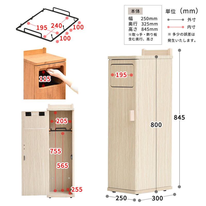 ・取っ手、飾り板を含む外寸:幅25cm、奥行32.5cm、高さ84.5cm
