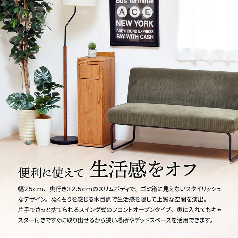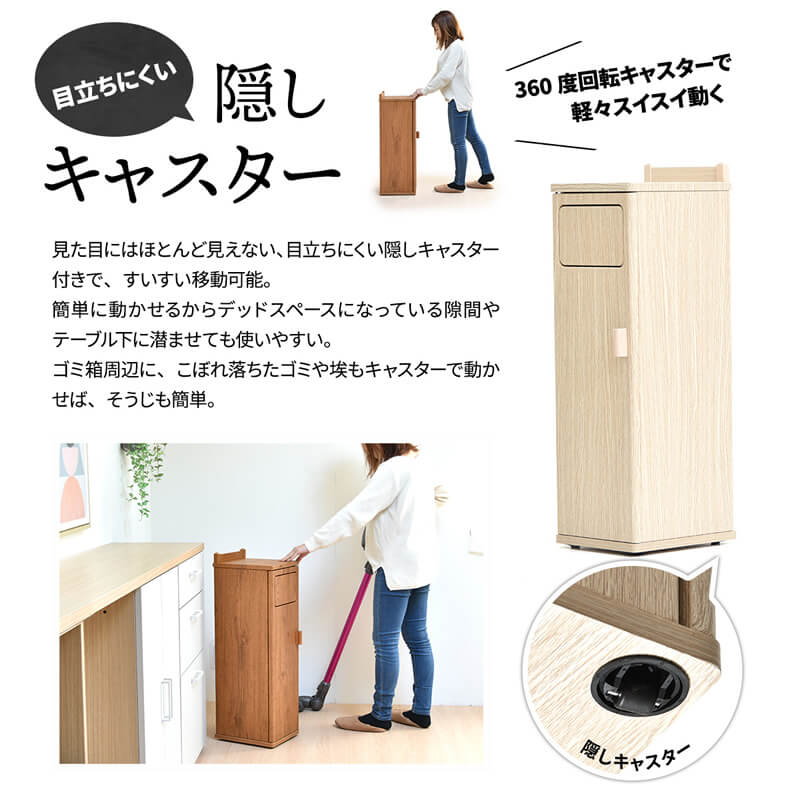 スリムで場所を取らないので家具や家電のすき間を有効活用できるゴミ箱です。