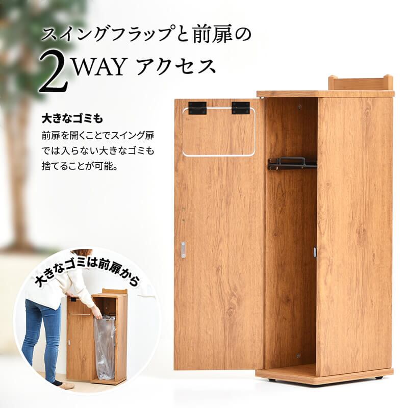 ゴミ袋の着脱も簡単な前扉があり、さらに見えにくい隠しキャスター付きで移動も簡単な機能性も抜群のごみばこです。