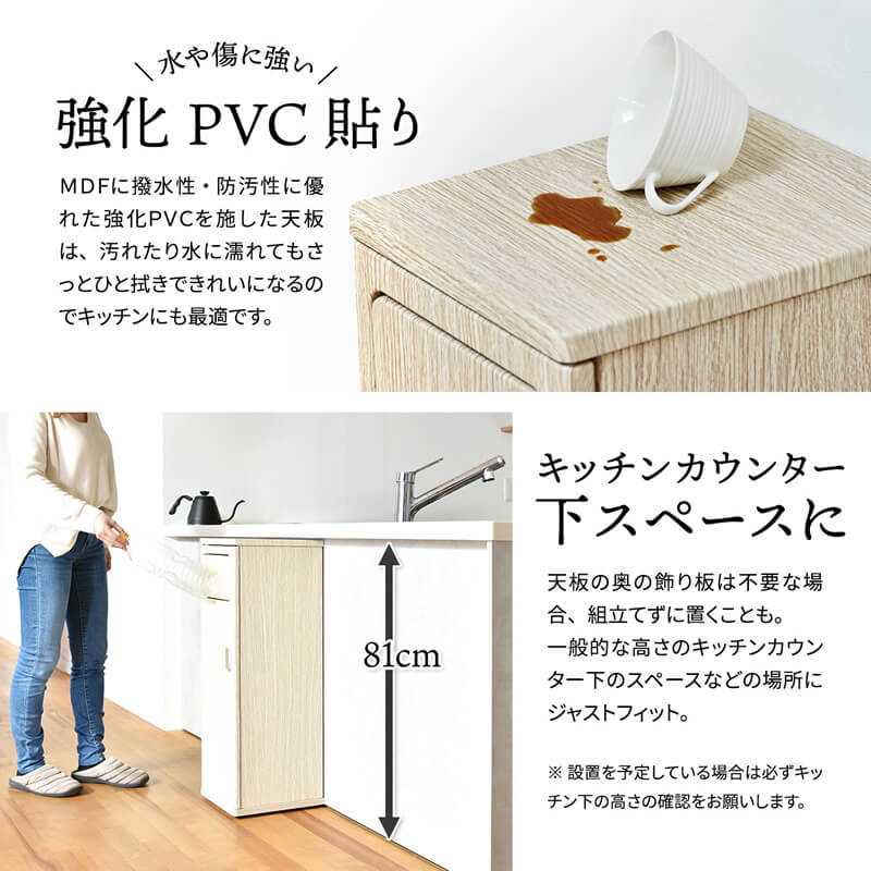 ・天板、底板、側板:中質繊維板にPVC貼り