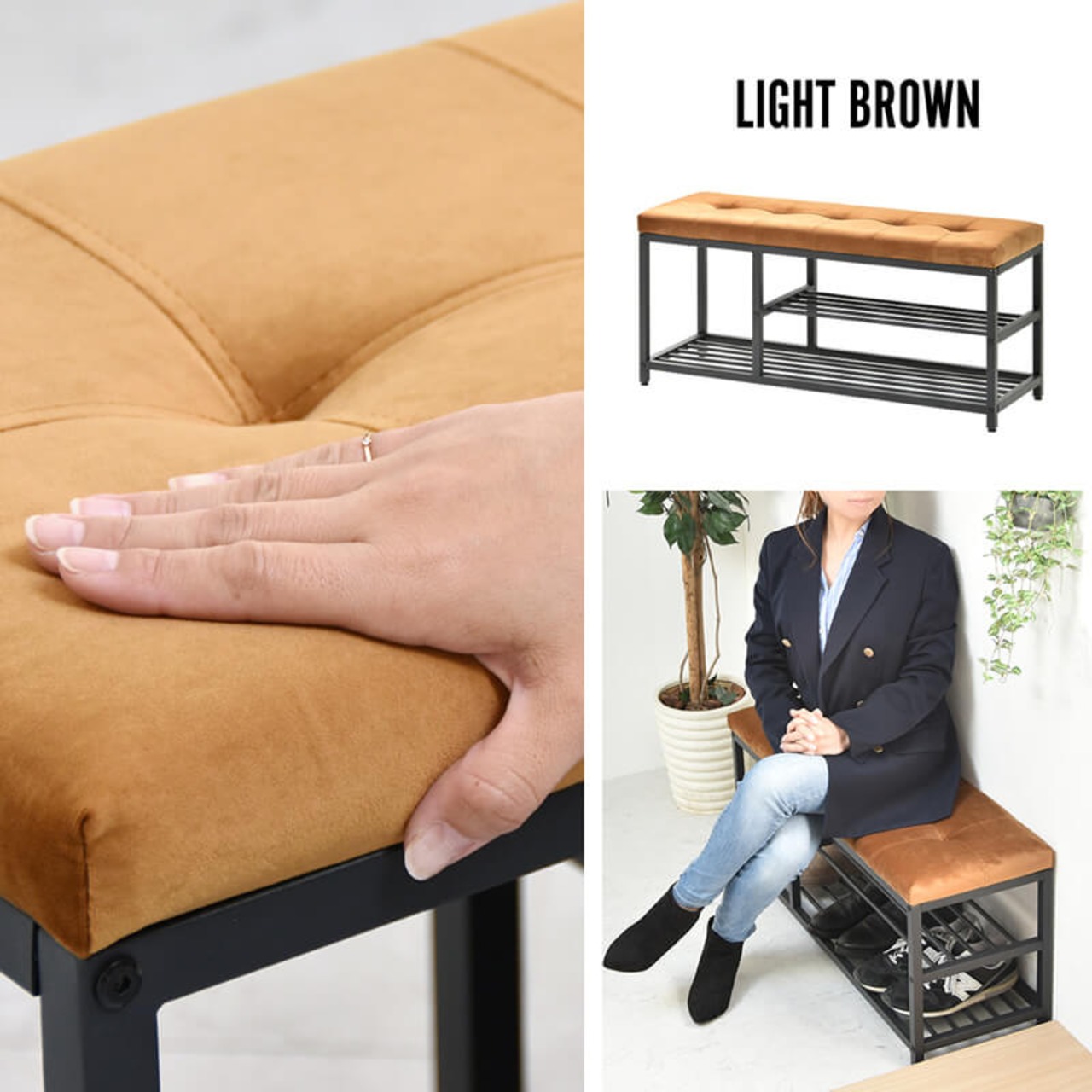玄関ベンチ 91cm幅 ベンチシューズラック 収納付きベンチ エントランスベンチ シューズラック 靴収納 シューズ収納ラック 靴収納ラック 玄関収納 玄関の椅子 おすすめ おしゃれ 北欧 モダン スタイリッシュ ベロアベンチ スリム 省スペース 玄関収納ベンチラック 収納付きベンチ 収納付き椅子 ライトブラウン ダークブラウン