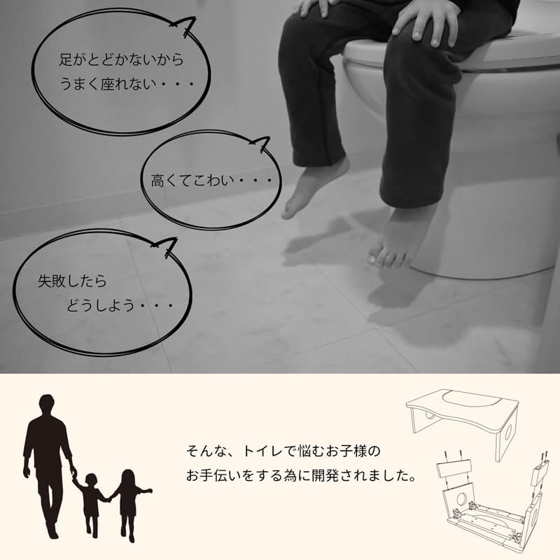 トイレの便器にスポッと合わせるように天板が半円形にカットされ取り外せるので、トイレトレーニングに最適なキッズ用のトイレ踏み台です。