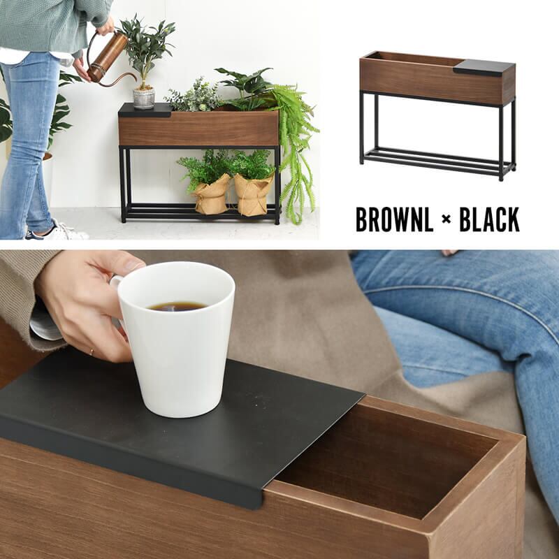 サイドテーブル 60cm幅 プランター台 スライドトレー付き プランター台サイドテーブル ボックス棚 ボックス収納 ソファサイドテーブル ソファ横 ベッドサイドテーブル ベッド横 ナイトテーブル 机 おすすめ おしゃれ 北欧 ブラウン プランタースタンド 収納付きテーブル 収納ラック 収納棚付きサイドテーブル