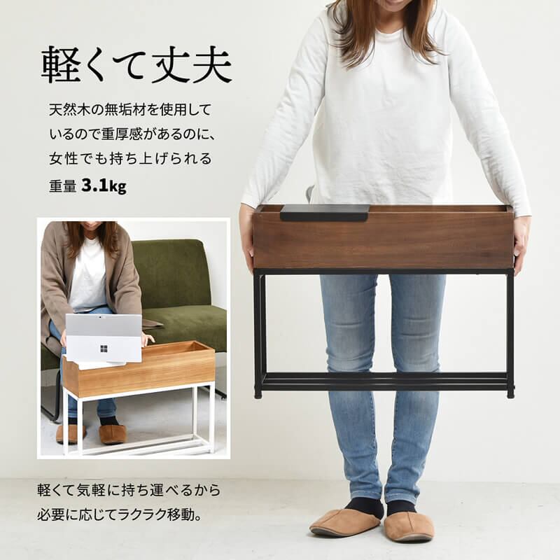 ボックス状の収納に観葉植物などを飾ることができ、飲み物や本などちょっとした小物を置くことができるスライドトレー付きの60cm幅の収納ボックスサイドテーブルです。